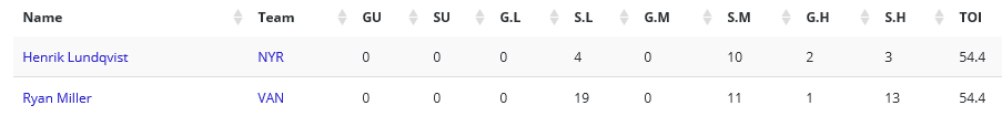 CANUCKS AND RANGERS GOALIE CORSI STATS