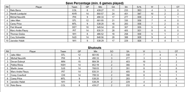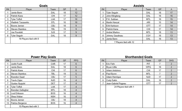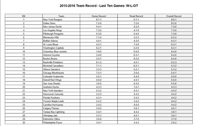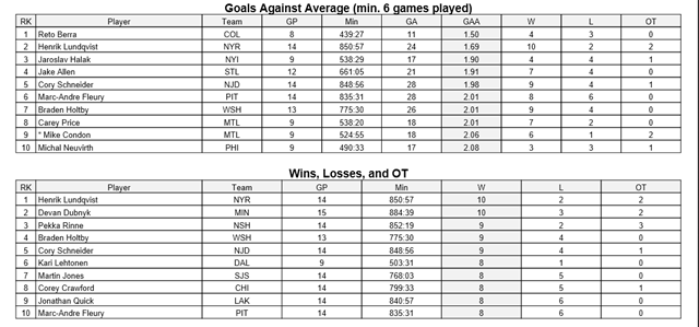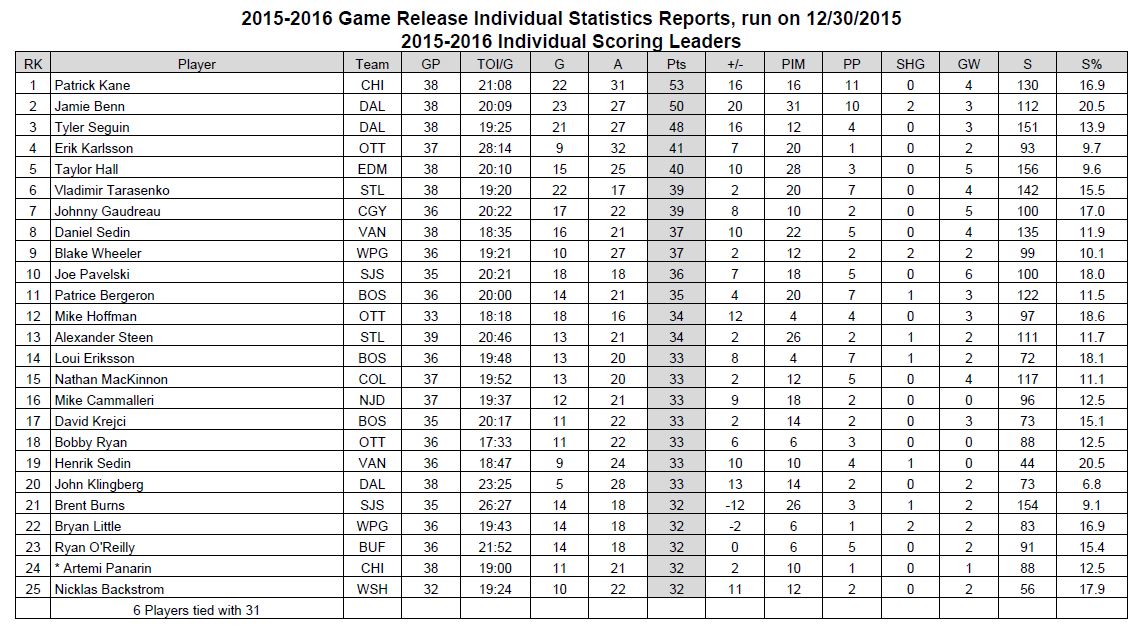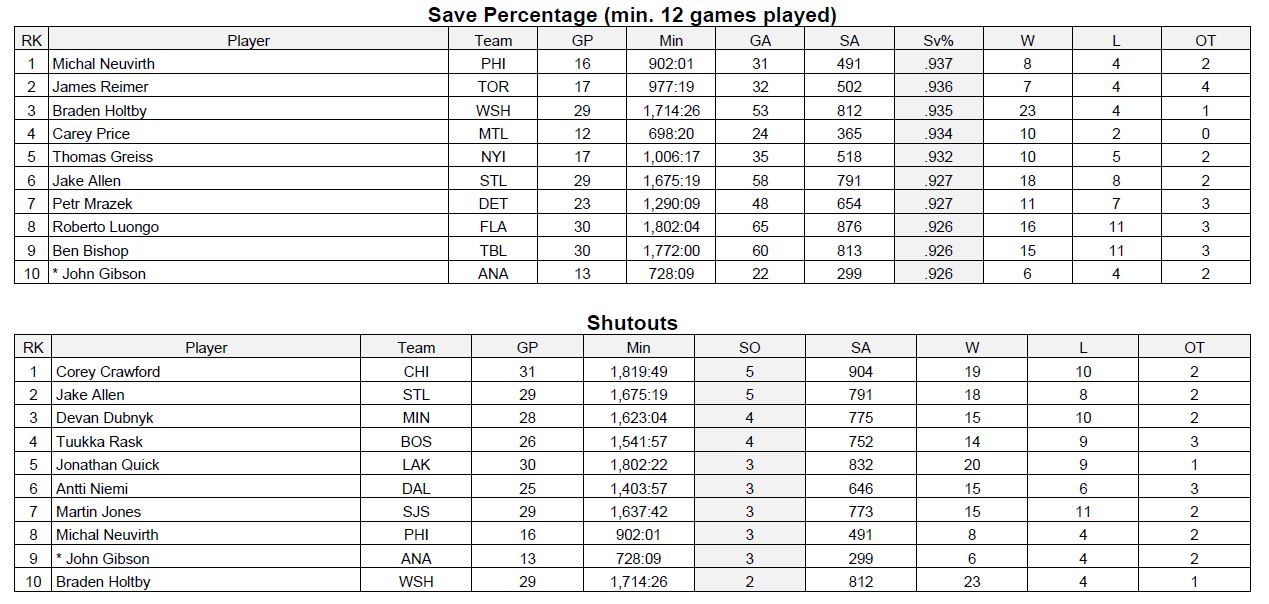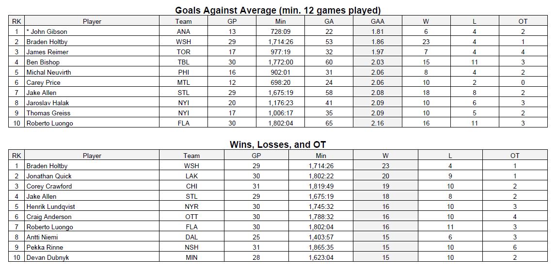 NHL STATS-DECEMBER 30, 2015 Posted on December 30, 2015 by CanucksBanter GOALIES NHL STATISTICS COURTESY OF THE NHL