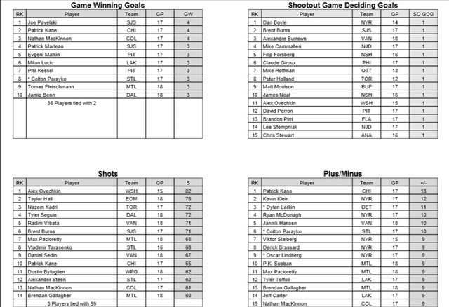 Canucks Banter: NHL Selected Stats For November 15, 2015 Posted on November 15, 2015 by CanucksBanter CANUCKS BANTER By Andrew Chernoff November 15, 2015Canucks Stats Courtesy of the NHL, with thanks. INDIVIDUAL STATS TEAM STATS