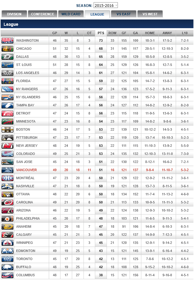 STATISTICS COURTESY OF THE NHL AND VANCOUVER CANUCKS