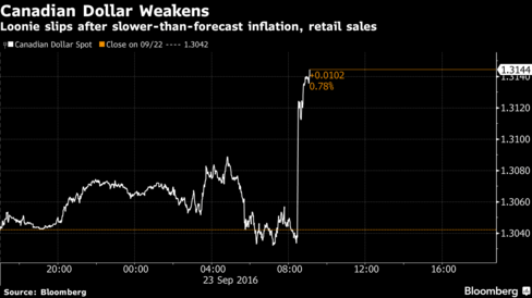 Canada’s core inflation rate was the slowest in two years in August, with the pace of consumer prices and overall inflation decelerating. The data spurred bets the economy may need added monetary stimulus. That hit financial shares that would see profits crimped by lower interest rates.