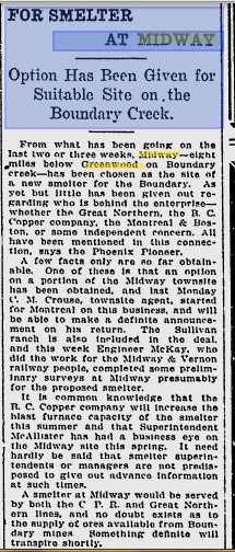 Midway Chosen For Smelter Posted on July 20, 2013 by CanucksBanter Spokane Daily Chronicle – Apr 12, 1905