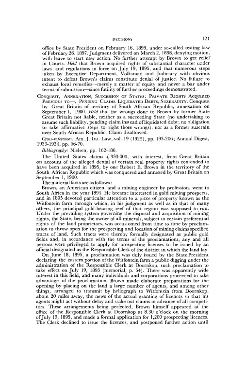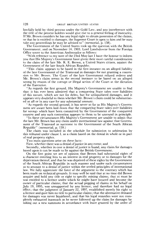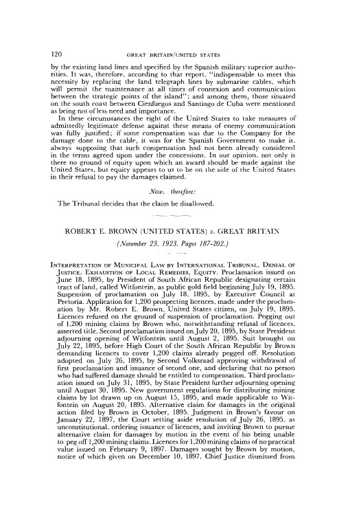 ROBERT E. BROWN (UNITED STATES) v. GREAT BRITAIN