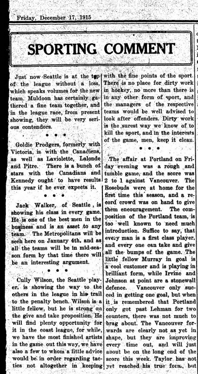 Seattle At Top Of League, Canadians Lead In The East Posted on August 28, 2013 by CanucksBanter Vancouver Millionaires Losing Streak Continues From: The Western Call, Vancouver, B.C., December 17, 1915