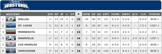 Vancouver sits tied for 3rd place in the Pacific division with Arizona with 37 points, 7 points behind the Kings in 1rst place.
