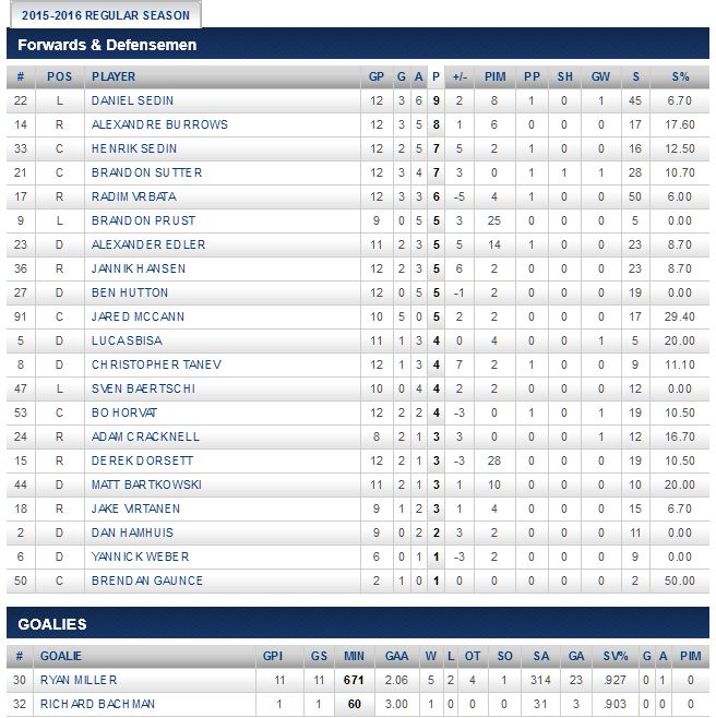 Statistics from the NHL, Vancouver Canucks and SportingCharts, with thanks.
