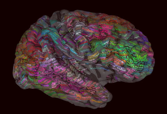 Scientists at the University of California, Berkeley, build a semantic atlas to chart how the brain responds to language. Image credit: University of California, Berkeley.