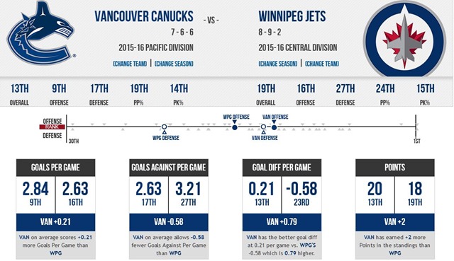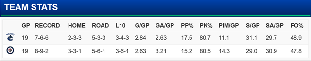 Vancouver and Winnipeg entered the game tonight set on changing their fortunes and ending streaks of futility: Canucks on a 3-game losing streak; and Winnipeg, winless in 6-games.